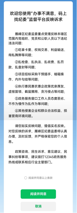 为深化运用群众点题监督机制,优化全区政务(营商)环境,雁峰区纪委监委推出“办事不满意,码上找纪委”监督二维码,进一步畅通民意直达纪委监委的渠道。