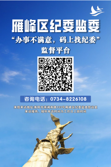 2.来信来访地址:衡阳市蒸湘南路133号雁峰区纪委监委信访室(工作日上班时间接访)。