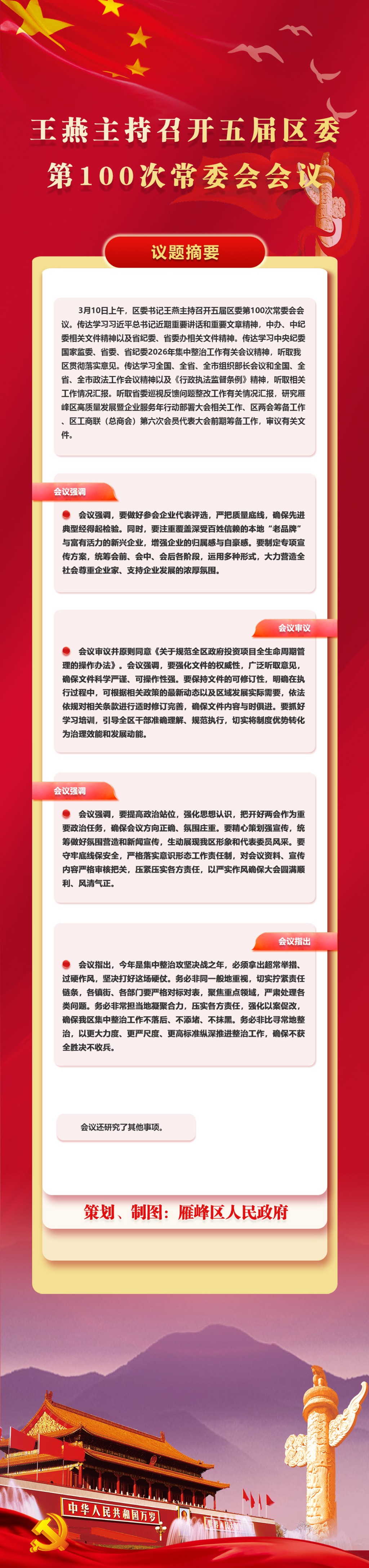王燕主持召开五届区委第100次常委会会议