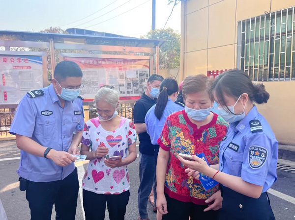 另一边,普法小分队采取分发宣传手册、走村入户“零距离”互动形式,向农民群众普及民法典、法律援助、农民工工资支付、道路交通安全、扫黄打非、禁毒等与群众生产生活息息相关的法律法规知识,接受群众咨询、解答群众疑难问题。