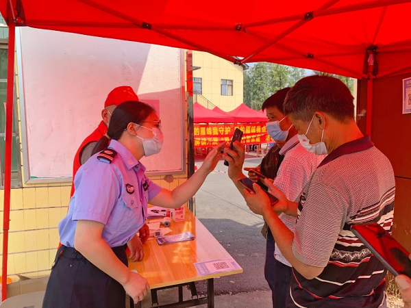 活动现场,司法局干警配合志愿者查验健康码、维护秩序,向群众发放综治民调、反电诈等资料,面对面指导大家下载“国家反诈中心”APP并开通预警功能。同时,还重点为群众讲解综治民意调查电话测评相关知识和规则,介绍区司法局在平安建设工作所取得的成效,针对群众最关心的生活问题提供了贴心的法律服务。