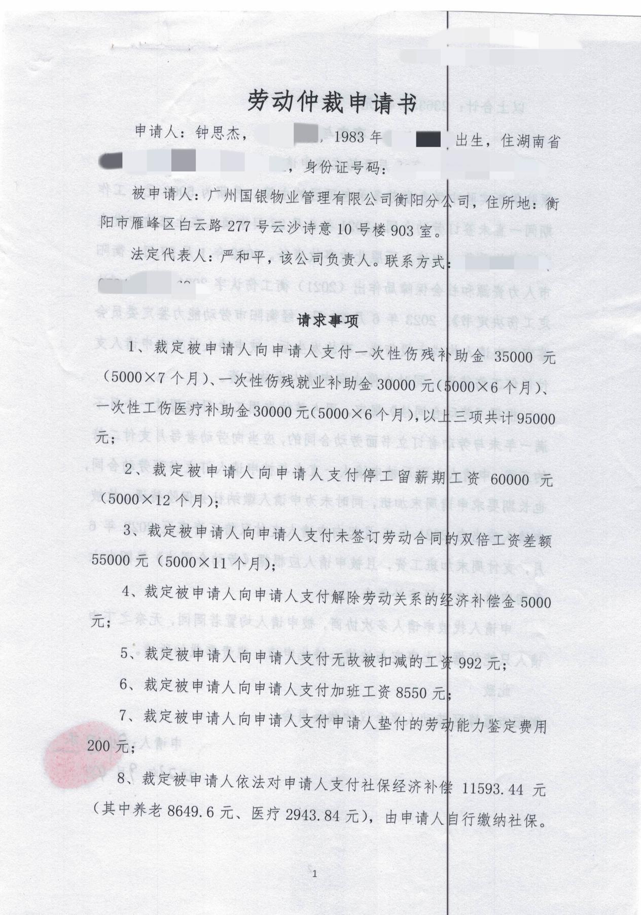 被申请人:广州国银物业管理有限公司衡阳分公司(负责人:严和平)