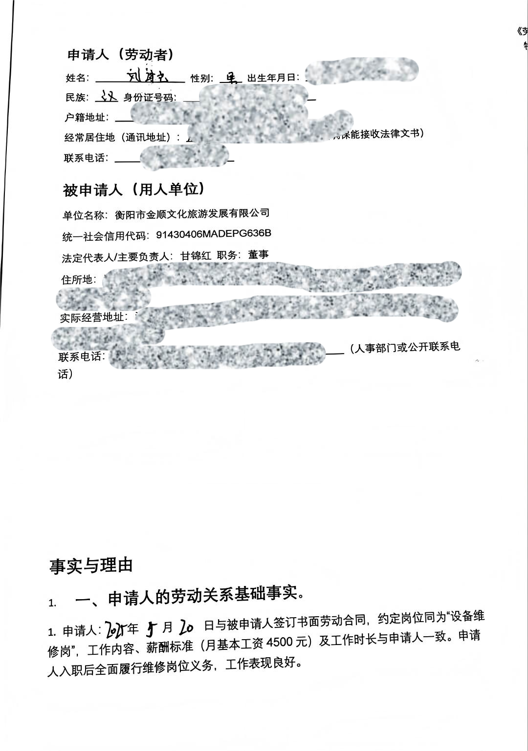 被申请人:衡阳市金顺文化旅游发展有限公司(法定代表人:甘锦红)