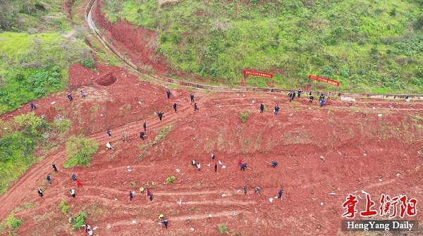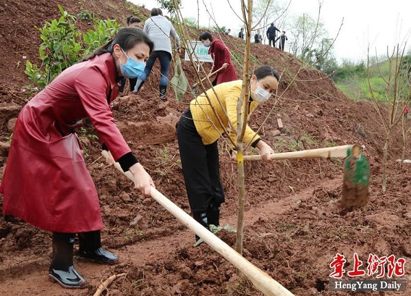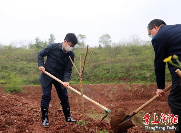 在山林村植树点,雁峰区党员干部和“衡阳群众”志愿者分散开投入植树行动,大家干劲十足,劳动热情高涨,挥起铁锹、抡起铁铲、挖坑培土、扶苗植树、踩实浇水……分工合作,配合默契,每项植绿任务都完成得认真细致。
