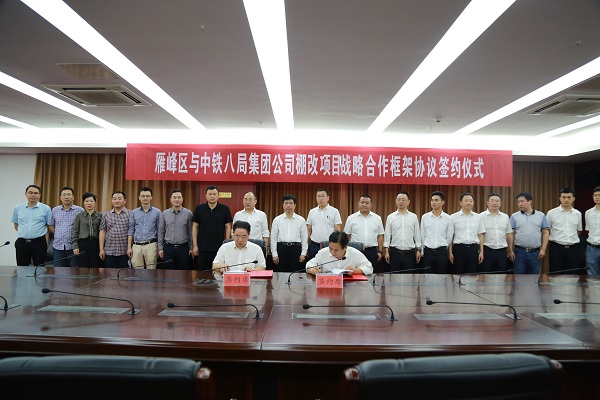 5月21日,雁峰区与中铁八局就棚户区改造项目签订战略合作框架协议,雁峰区委书记周玉军,区委副书记、区长何子君参加。