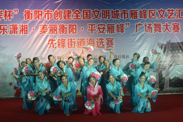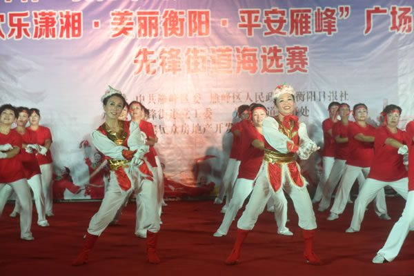 9日晚,衡阳市创建全国文明城市雁峰区文艺汇演暨“欢乐潇湘﹒美丽衡阳﹒平安雁峰”全民广场舞大赛先锋街道海选在民俗文化广场欢快开舞,近200名广场舞爱好者为现场观众送上了精彩纷呈的视觉盛宴。