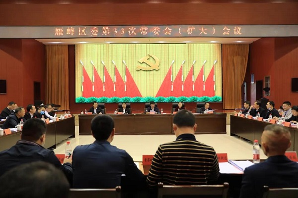 11月3日上午,雁峰区委书记周玉军主持召开区委常委会(扩大)会议,深入学习贯彻党的十九届五中全会、习近平总书记考察湖南重要讲话和省委全会、市委常委会(扩大)会议精神,分析研判当前经济发展形势,加快推进重点项目建设,推动全区上下进一步坚定信心、鼓足干劲,决战四季度最后两个月,决胜“十三五”,切实做到在落实习近平总书记考察湖南重要讲话精神中干在实处、走在前列。区委书记周玉军在会上强调,要瞄准“三高地”“四新使命”新目标,以超常力度冲刺四季度、决胜“十三五”,力争完成全年各项工作目标任务,为衡阳市“一体两翼”发展战略作出雁峰新的更大贡献!