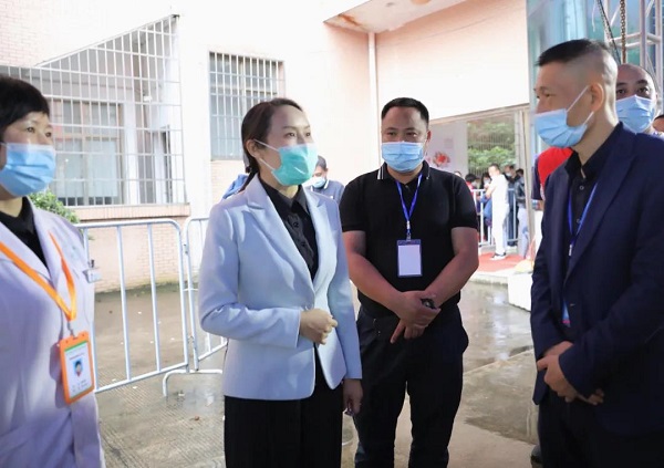 ▲雁峰区委书记王燕到疫苗接种现场调度疫苗接种工作 胡欢摄