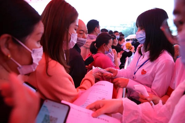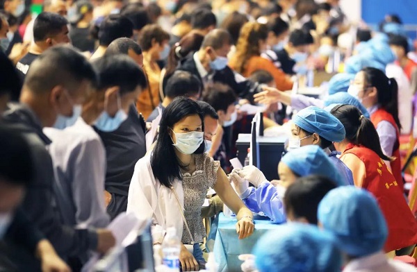 雁峰区此次大规模人群新冠疫苗接种将持续3天,预计完成接种10万人次,共设有7个方仓点、1个固定点、一台流动车,163个固定接种台,近500名医护人员及2000余名工作人员和“衡阳群众”志愿者在雁峰区疫苗接种工作一线提供服务,共同建立新冠疫苗接种服务网络,为市民构筑起坚强健康屏障。