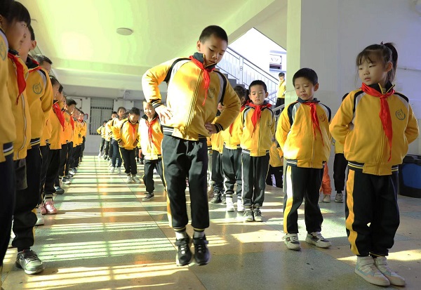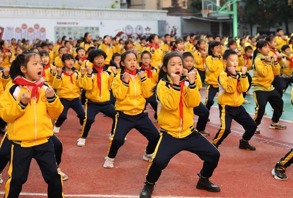 2021年11月10日,湖南省衡阳市雁峰区环城南路小学,同学们在做《国学武术操》。