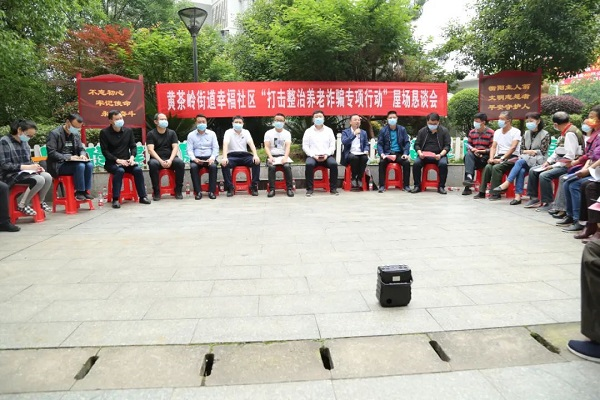 5月19日,区委副书记、区长谢韬来到黄茶岭街道幸福社区召开“打击整治养老诈骗专项行动”屋场恳谈会,与近40名社区老年群众代表围坐一圈,面对面交谈,宣讲养老政策知识,提高老年人防范养老诈骗的意识和自我防范的能力,守护好老年人的“钱袋子”。