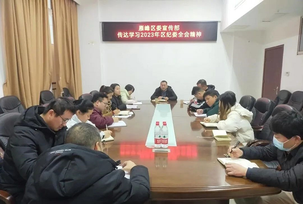 2月6日上午,区委宣传部召开全体干部大会,传达学习中国共产党雁峰区第五届纪律检查委员会第三次全体会议精神,研究贯彻落实工作。