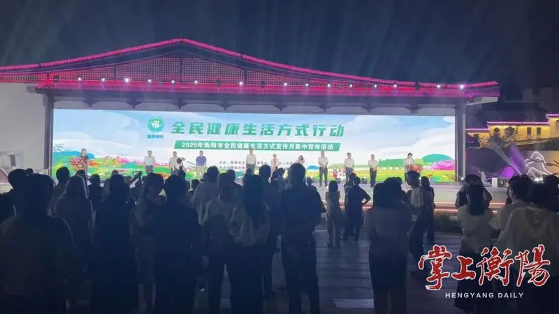 9月29日晚,2025年衡阳市全民健康生活方式宣传月集中宣传活动启动仪式在南岳第一峰潇湘八景广场举行。本次活动由市卫健委、雁峰区政府主办,市疾控中心协办,以“培养健康生活方式,筑牢家庭健康基石”为主题,旨在推动“三减三健”理念融入市民日常生活。副市长谢宏出席并宣布活动启动。