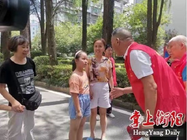 “小朋友,放假了吗?没有大人的陪伴,千万不要下水游泳哦!”7月9日,在幸福社区两排笔直挺拔的水杉树下,身穿“衡阳群众”志愿者红马甲的周正国正在进行防溺水宣传。这是志愿者们当前的一项重点工作。