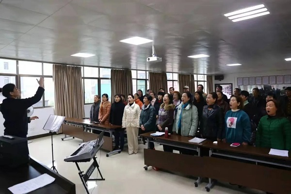 在排练室里,合唱团排练节目为元旦活动做着准备。社区老年合唱团的队员们告诉记者,社区城乡治理标准化建设工作正在开展,社区里的舞蹈队、乐器队都在加紧排练,社区老党员和志愿者们商量着通过元旦活动向居民们好好宣传这项工作。