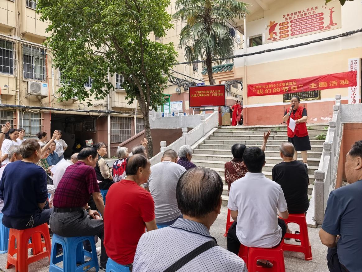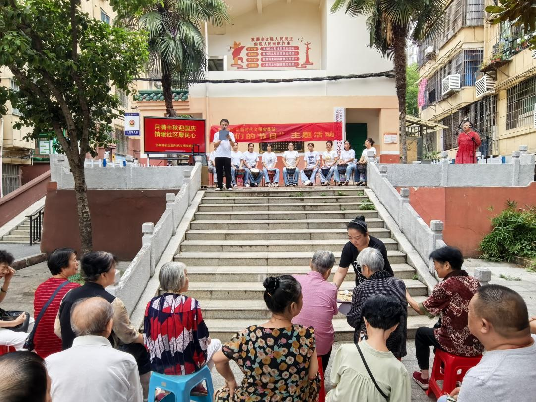 问答活动结束,表演队员邀请现场居民共同合唱《今天是你的生日》,在歌声中,大家的爱国情怀更加浓烈。