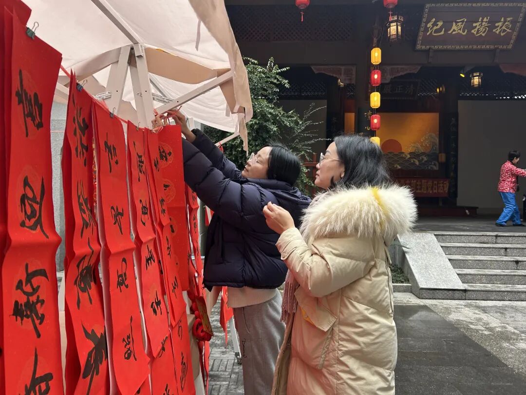 活动现场,古韵悠长与年味浓郁撞个满怀。社区书法爱好者挥毫泼墨、笔走龙蛇,一笔一划间书写出浓浓的新春祝福,一幅幅红彤彤、寓意吉祥的春联,免费送到居民手中,将美好期许传递到家家户户。